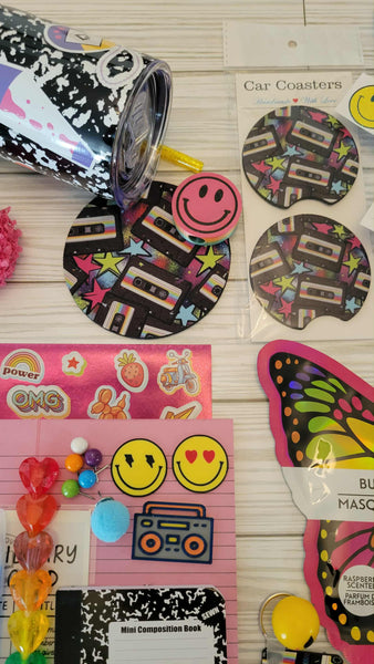 Our 80's & 90's Bookish Bundle is the perfect way to celebrate Nostalgia! This bundle is carefully crafted with amazing items that fit in with your favorite memories roller skating and holding hands with your crush! This bundle is PACKED with useful pieces to keep track of your current books, or just to doodle on and remember the good life as a kid! Just remember to be in the house before the street lights turn on!