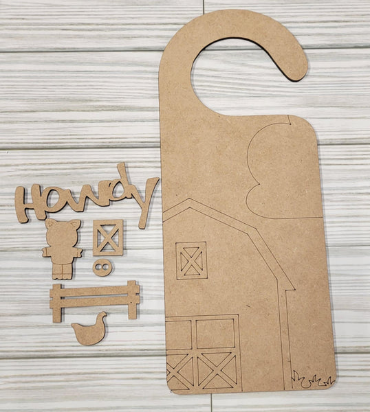 Our MDF cut Door Hanger Craft Set comes with the all the pieces to complete the door hanger, 6 coordinating paint colors, paint brush, and wood glue for assembly.