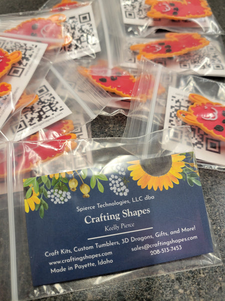 Our Sweet Dot Llama is made out of corn-based PLA and includes a stainless pin attached to the back!